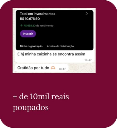 Tudo isso em um único lugar, com linguagem acessível, passo a passo guiado e apoio para você finalmente dominar o seu dinheiro — de verdade.